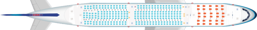 中国南方航空のA330は飛行機全体の2/3程度がエコノミー席で、2-4-2の配置となっています。