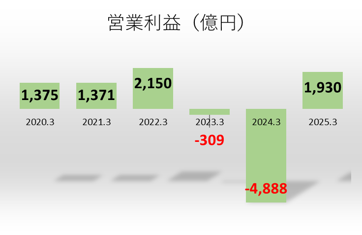 2023.3に赤字に転落し、2024.3には赤字幅が大幅に膨らみました。
