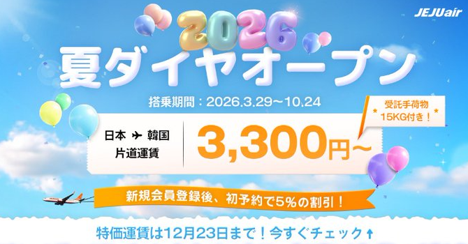 チェジュ航空の現在実施中のセール