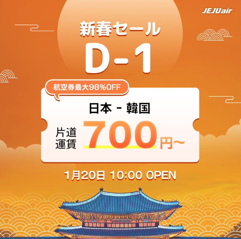 2026年1月は航空券が最大98%オフとなる700円セールが実施されました。