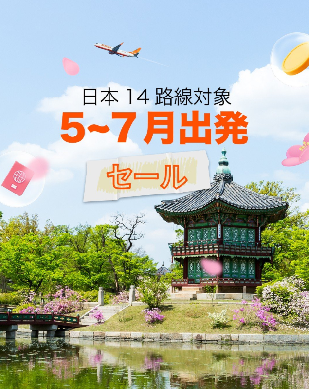 運賃例:日本各地-韓国2,300円~※諸税別
