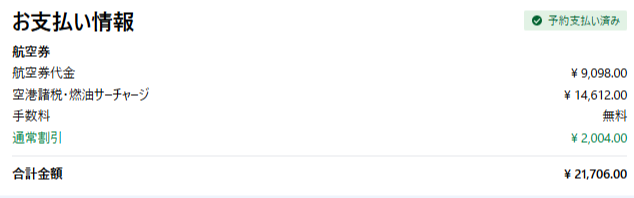 また、今回検索したケースだと、燃油サーチャージと税金が14,218円が運賃とは別に必要な点にも注意が必要です。