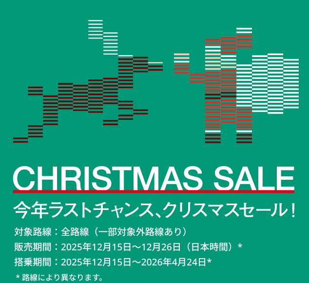 ZIPAIRでは2025年最後のセールとして「クリスマスセール」を実施しています。