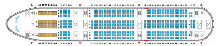いずれの機材であっても左右3席、中央3席(3-3-3)の座席配置の国際線で一般的なスタイルです。